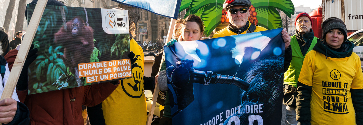 One Voice et ses partenaires se sont rassemblés devant la commission européenne à Paris et les représentants ont été reçus pour dire stop à l'huile de...