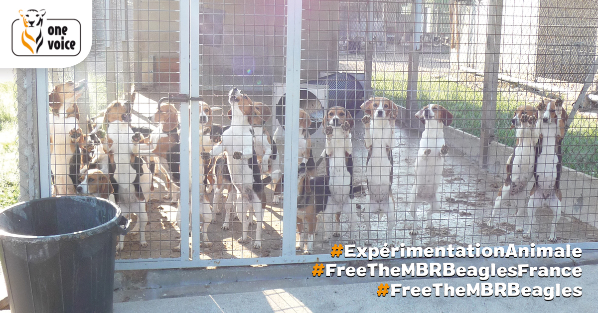One Voice organise une action dans quinze villes en France contre les élevages de chiens destinés aux laboratoires.